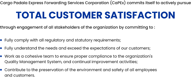 Cargo Padala Express Forwarding Services Corporation or CaPEx, is the realization of a dream of an innovative young entrepreneur of a world-class freight forwarding company.